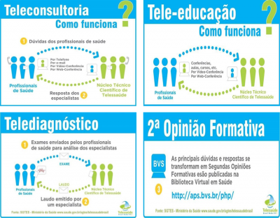 - Brasil. Portal da Saúde. O que é o Programa Telessaúde Brasil Redes. [Acesso em 28 out. 2015] Disponível em: URL:http://portalsaude.saude.gov.br/index.php/o-ministerio/principal/secretarias/481-sgtes-p/gestao-da-educacao-raiz/telessaude/l1-telessaude/9917-telessaude-brasil>